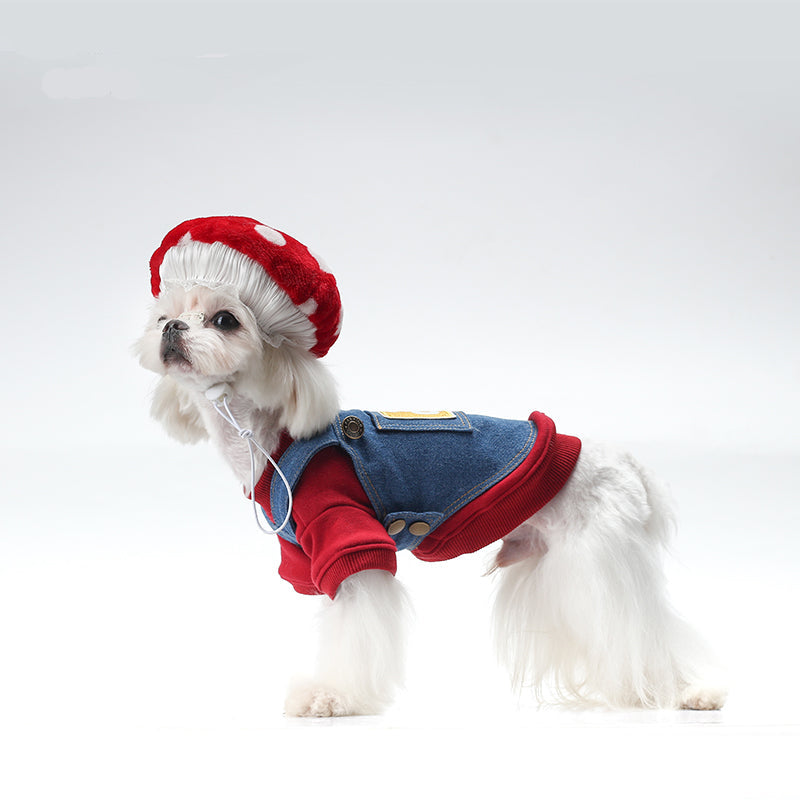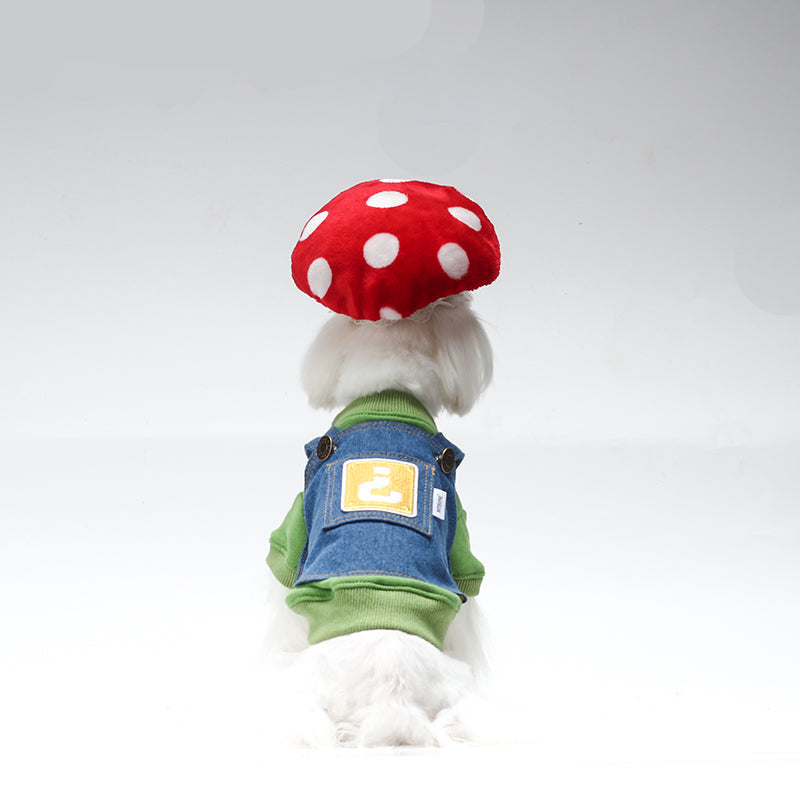 Joyful Tribute to Childhood Memories Embark on a new adventure with this charming pet outfit that celebrates the spirit of perseverance and playful nostalgia! Transform your furry friend into a brave little plumber on a mission to rescue the beautiful princess in the castle. Featuring a red mushroom hat and classic game-style overalls, this outfit brings a delightful retro vibe while sparking a sense of exploration and fun.