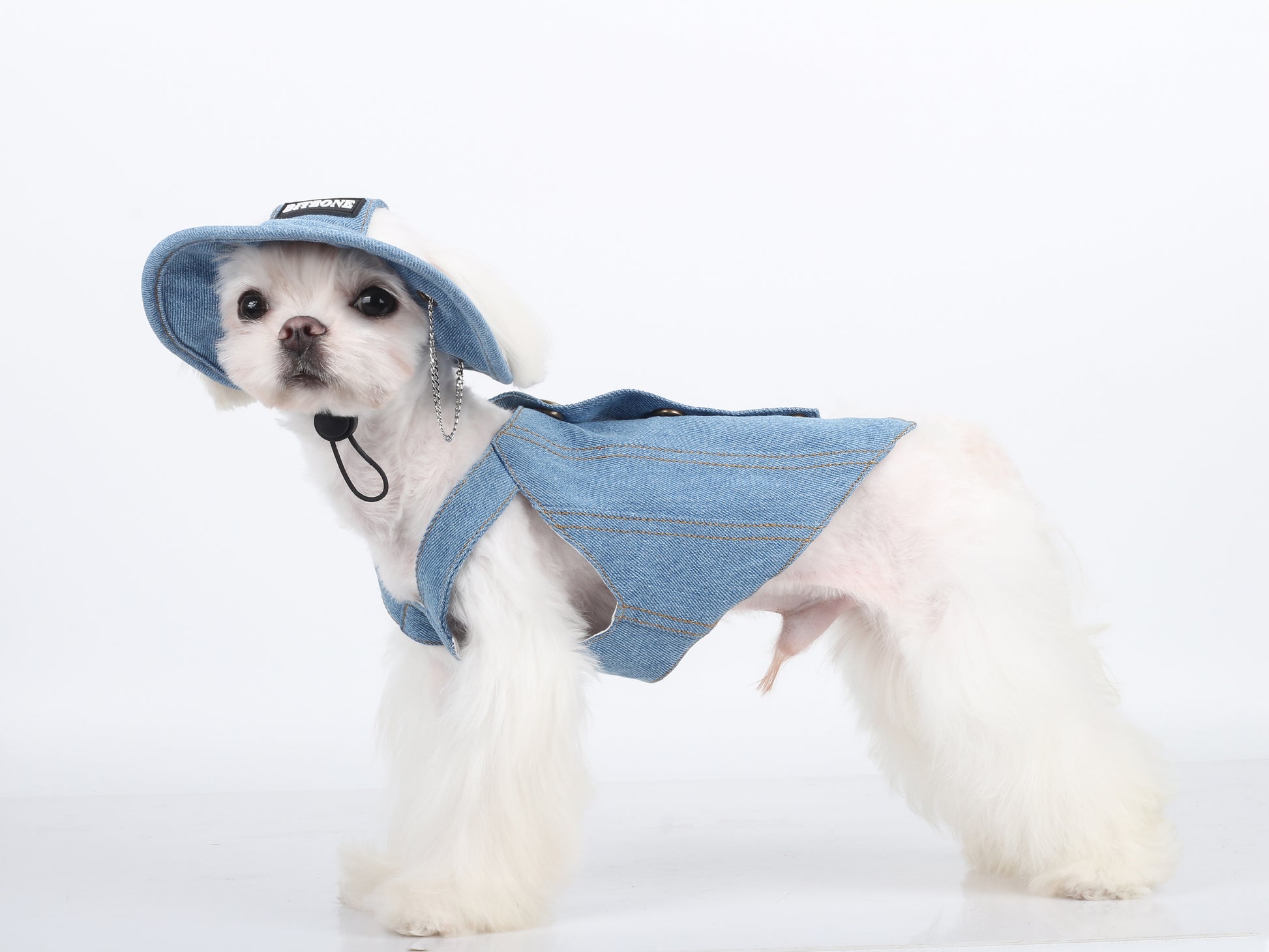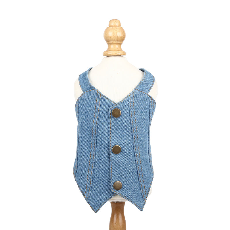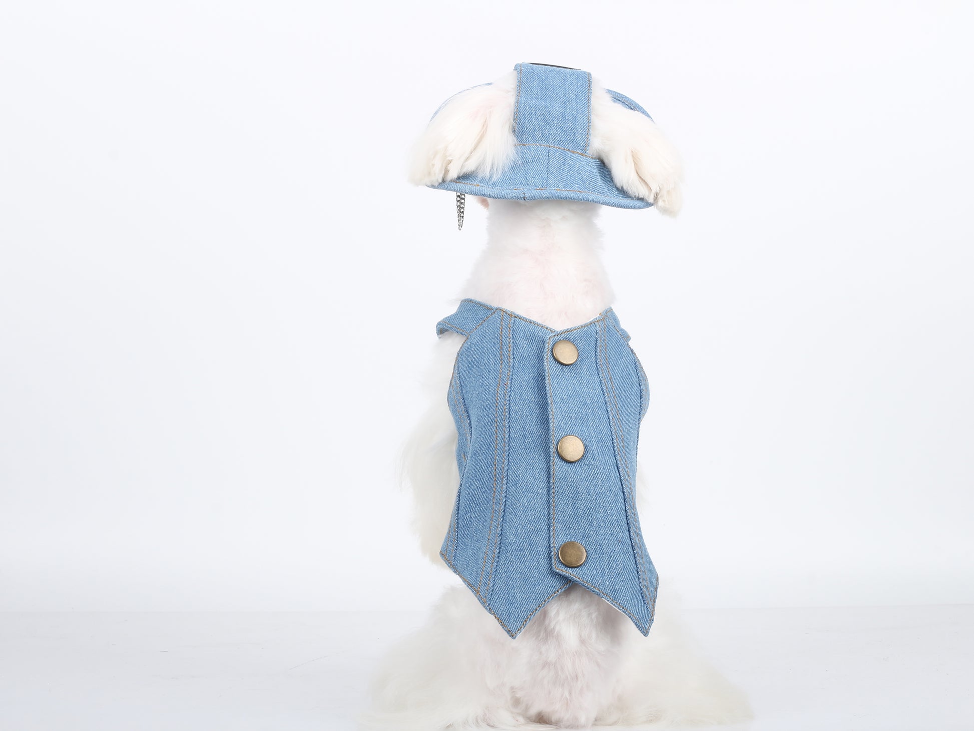 Enhance your pet’s style with this Vintage Denim Pet Outfit Set from Paw & Claw Institute. Featuring a fashionable denim cowboy hat with a chic chain decoration and a matching denim harness, this outfit is perfect for small dogs and cats. Designed with both style and comfort in mind, the set is ideal for casual outings, photo shoots, or special occasions. The hat includes an adjustable strap to ensure a secure fit, while the harness provides safety during walks. Show off your pet’s unique personality with this eye-catching, stylish pet accessory set.